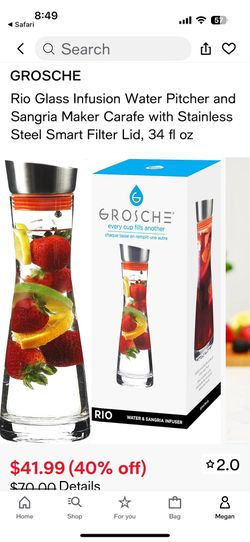 GROSCHE Rio Glass Infusion Water Pitcher And Sangria Maker Carafe 34 Fl Oz$20Decatur, GA