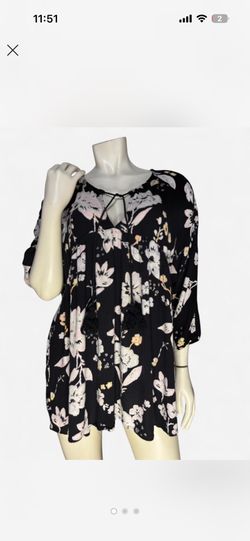 Black floral print billabong short dress with tie front and bell sleeves$10Los Angeles, CA