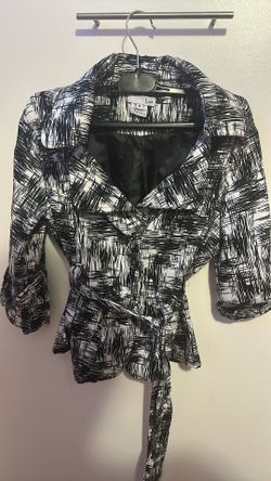 Cute Talie Black And White Geometric Belted Trench Coat$10Lancaster, CA