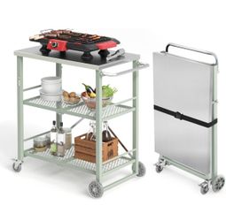 LUE BONA Outdoor Grill Cart Table with Full Folding Design, Stainless Steel Pizza Oven Stand with 2 Total Lock Casters, Rolling BBQ Table and 3 Shelf $40City Of Industry, CA