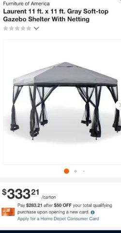 Laurent 11 ft. x 11 ft. Gray Soft-top Gazebo Shelter With Netting$200Bakersfield, CA