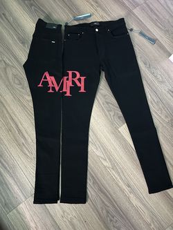 Amiri black/red staggered logo denim jeans$799Stockton, CA