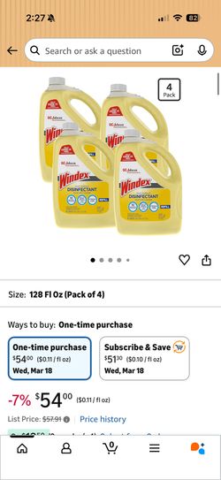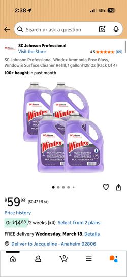 SC Johnson Professional, Windex Ammonia-Free Glass, Window & Surface Cleaner Refill, 1 gallon/128 Oz (Pack Of 4)$35Anaheim, CA
