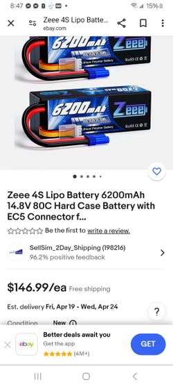 2-14.8v 6200mah Lipo Batterys$60Rialto, CA