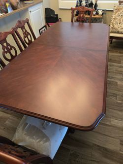 Wood Dining Table w/2 Extension Leafs 8 Chairs & Custom Table Pad$900St. Petersburg, FL