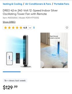 DREO 42-in 240 -Volt 12 -Speed Indoor Silver Oscillating Tower Fan $100Denver, CO