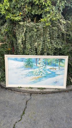 Hand Painted Original Snow Scene On Canvas With Deer$50Modesto, CA