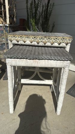Set A Vintage, Wicker, Cottage Style Nesting Tables, Chipping White With Brown Tops$58Modesto, CA