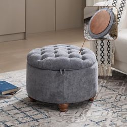24Inch Round Storage Ottoman with Tray, Modern Tufted Circle Coffee Table with Storage, Upholstered Ottoman with Removable Top for Living Room, Bedroo$100Rosemead, CA