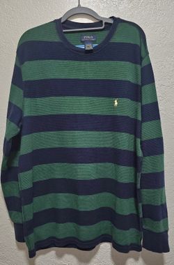 Ralph Lauren POLO 🐎 Green & Navy Stripe Long-Sleeve Shirt~ Size: XL