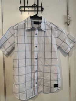 Calvin Klein Kids Size 14/15 White & Squares Button Down Short Sleeve Shirt 55%Cotton 45%Polyester $25Hemet, CA