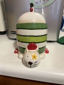 CBK LTD ceramic Christmas Kitty Treat/cookie Jar$20Warner Robins, GA