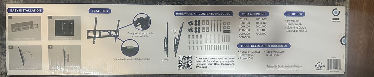 ⸻ Core Innovations 30”–90” Tilting TV Wall Mount – BRAND NEW$25Tucson, AZ