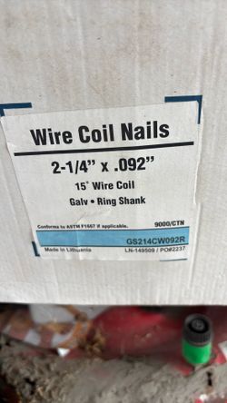 Wire Coil Nails 2-1/4 X .092 Galvanized Ring Shank $75San Antonio, TX