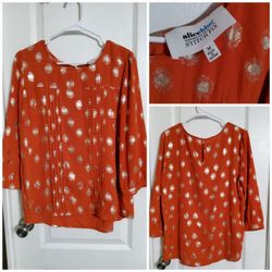 Alice Blue Womens Size M Top Orange Dotted 3/4 Sleeve Pleated Semi Sheer Keyhole$10Webberville, TX