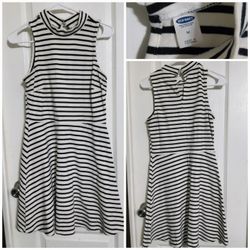 Black and White Striped Sleeveless Mock Turtleneck Fit & Flare Jersey Dress Size Medium$10Webberville, TX