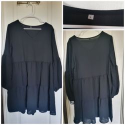 Black Womens Tunic Dress Long Sleeve V Neck Casual Loose Flowy Swing Shift Dress size L$30Webberville, TX