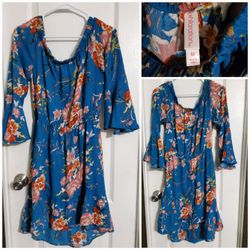 Blue floral print off-the-shoulder dress with bell sleeves Size M$15Webberville, TX