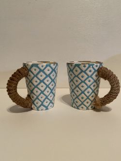 Mud Pie Raised Blue White Diamond Pattern Ceramic Mugs with Real Rope Handles $9Orangeburg, SC