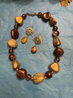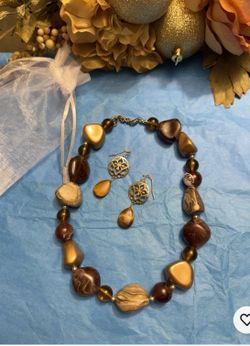 Stunning 2 Pc Gold Brown Beaded Necklace And Earrings Set$25Mount Prospect, IL