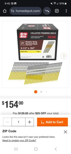3-1/2 in. x 0.162 in. 21° Plastic Collated Bright Coated Smooth Shank Round Head Framing Nails 2500 per Box$75San Diego, CA