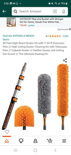 30 Foot High Reach Duster Kit with 7-24 ft Extension Pole // High Ceiling Duster Cleaning Kit