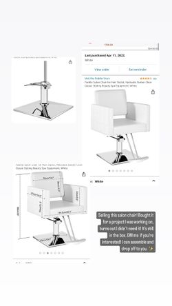 White Paddle Salón Chair For Hair Stylist $200Bedford Park, IL