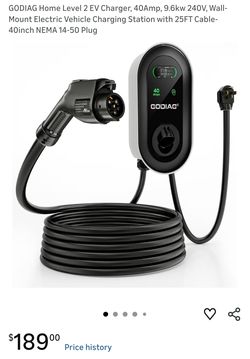 GODIAG Home Level 2 EV Charger, 40Amp, 9.6kw 240V, Wall-Mount Electric Vehicle Charging Station with 25FT Cable-40inch NEMA 14-50 Plug$59Artesia, CA