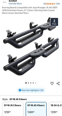 Running Boards Compatible with Jeep Wrangler JK JKU 2007-2018 Unlimited 4 Doors, 6" 2-Stairs Side Step Rails Coated Black Carbon Steel Nerf Bars$129Norwalk, CA