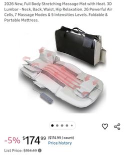 New, Full Body Stretching Massage Mat with Heat. 3D Lumbar - Neck, Back, Waist, Hip Relaxation. 26 Powerful Air Cells, 7 Massage Modes & 5 I$89Artesia, CA
