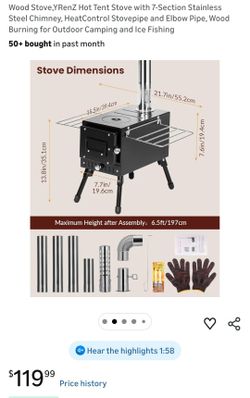 Wood Stove,YRenZ Hot Tent Stove with 7-Section Stainless Steel Chimney, HeatControl Stovepipe and Elbow Pipe, Wood Burning for Outdoor Camping and Ice$49Artesia, CA