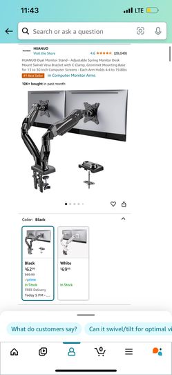 HUANUO Dual Monitor Stand - Adjustable Spring Monitor Desk Mount Swivel Vesa Bracket with C Clamp, Grommet Mounting Base for 13 to 30 Inch Computer Sc$45Dearborn, MI