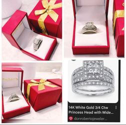 14K White Gold 3/4 Ct. T.W. Princess Head with Wide Band Wedding Set, a masterpiece design$1,999Las Vegas, NV