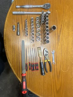 unboxed tools wrenches with sockets,metal files,chisle.pliers$20Tucson, AZ