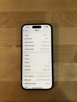 AT&T iPhone 16 128Gb Great Condition 100% Battery Health $500Lynnwood, WA