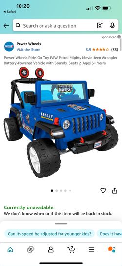 PAW Patrol Jeep Wrangler Ride-On Toy for Kids, Battery-Powered$275Los Angeles, CA