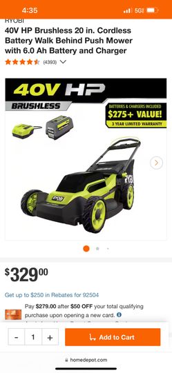 RYOBI 40v Brushless 20in Cordless Battery Walk Behind Push Mower $250Riverside, CA