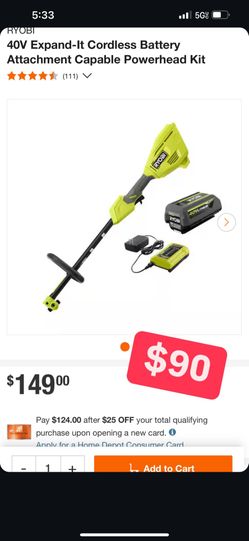 RYOBI 40v Cordless Battery Attachment Capable Powerhead Kit $90Riverside, CA