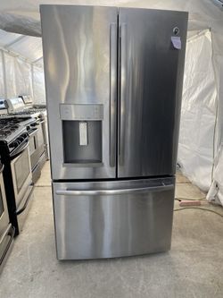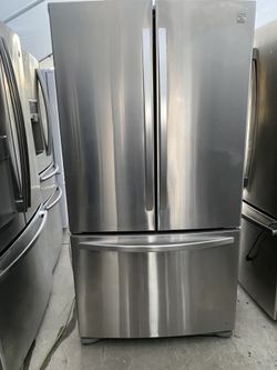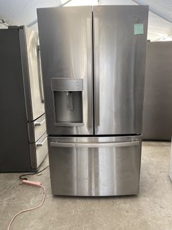 General Electric beautiful stainless steel refrigerator looks like new French door everything works perfectly first come first served $425Corona, CA