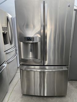 General Electric beautiful stainless steel refrigerator looks like new French door everything works perfectly first come first served $400Corona, CA