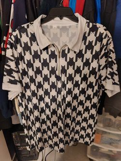 Black And White Cat Pattern Zip Up Polo Shirt Rare$100San Antonio, TX
