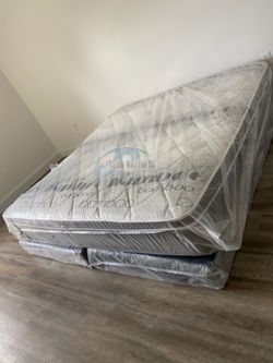 Queen mattress pillow top set with box spring (2pc - new) $199Fort Lauderdale, FL