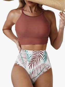 Herseas Women's Bikini Sets High Neck Tropical Leaf Print High Waisted Two Pieces Swimsuits Bathing$20Hemet, CA