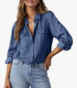 Astylish Women Button Down Denim Shirts Casual Long Sleeve V Neck Chambray Blouse Top size XL$25Hemet, CA