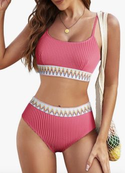 2 Piece Color Block Bikini Set Wireless Swimsuit Tummy Control High Waist Sporty Bathing Suit size L$15Hemet, CA