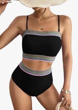 Two Piece Bandeau Black Bikini Swimsuit Off Shoulder Cheeky High Waisted Tummy Control Bathing Suits$20Hemet, CA