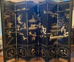 George Zee & Co. 6-Panel Asian Black Lacquer Screen – Hong Kong, 1950s$1,500French Camp, CA