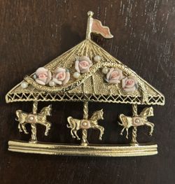Vintage 1928 Carousel Porcelain Roses Faux Roses Enamel Brooch Pin$45San Antonio, TX
