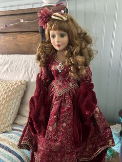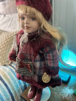 Collectors Choice Porcelain Doll 16” Red Wool Coat Hat Blonde Blue Eyes$30Ewa Beach, HI