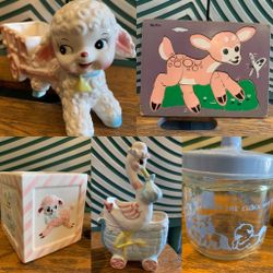 Vintage Nursery Kitsch Planter Baby Shower Display Puzzle Japan Napco Retro Animal Stork Lamb$80Hillsboro Beach, FL